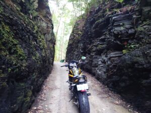 R166から少しそれて細い道を進むと車一台がやっと通れる珍布峠に到着!