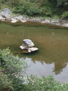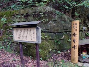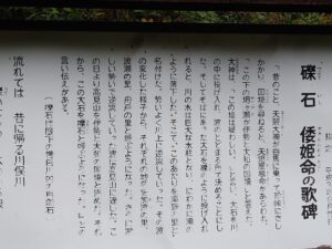 峠の横の小道を歩いて降りて行くと天照大神にまつわる話の礫石がありました。